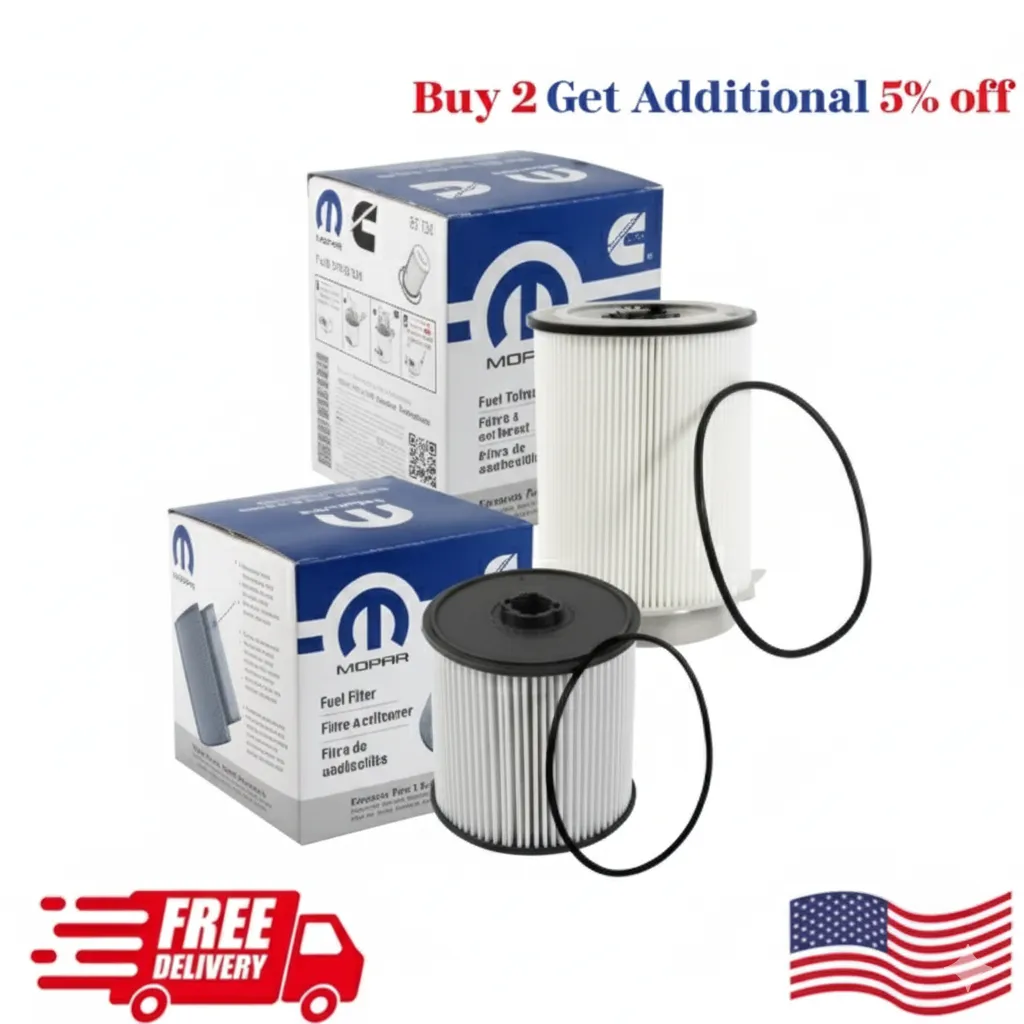 Buy 2 Get 5% Discount on the Mopar 68157291AA – 68436631AA Water Separator Fuel Filter Kit, specifically designed for Dodge Ram 2500-3500 diesel trucks with the Best 6.7L Cummins Diesel Engine. This OEM kit includes two premium fuel filters engineered to provide superior fuel filtration and water separation, ensuring your diesel engine receives clean, contaminant-free fuel for optimal performance and longevity. Manufactured to meet OEM standards, these filters provide reliable protection against water and debris, reducing maintenance costs and prolonging engine life. Ideal for commercial fleets and individual truck owners looking for genuine Mopar filtration solutions with convenient multi-buy savings.